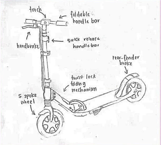 The manual scooter is designed with a focus on mechanical efficiency and rider safety. It operates without the need for motors or electronics, relying instead on human-powered propulsion. Every component, from the braking system to the folding mechanism is engineered to ensure smooth operation, durability, and ease of control, offering a reliable and enjoyable riding experience without the need for complex mechanisms.